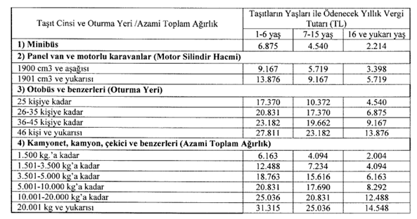 C. (IV) Sayılı Motorlu Taşıtlar Vergisi Tarifesi